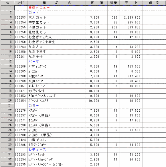 日付範囲を指定して、メニュー別の売上が表示できます: