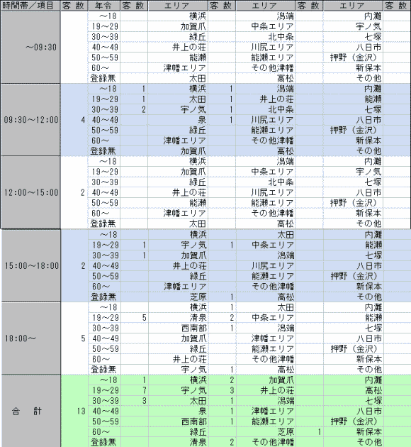 単純に来店時間をレポートするのではなく、エリア別等様々な条件にてレポートできてこそ、次
